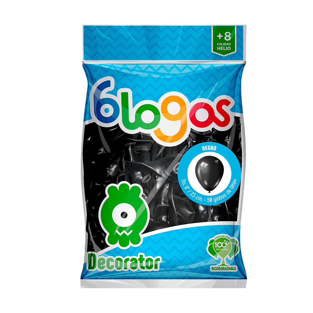 GLOBO LATEX PAYASO NO.9 NEGRO C/50 PZA